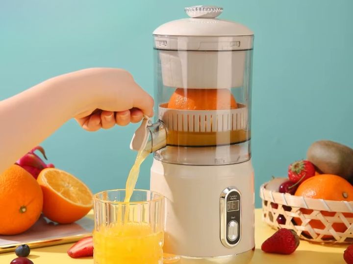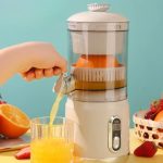 Extracteur de jus électrique portable qui presse automatiquement oranges, citrons et autres fruits pour obtenir un jus frais et sans pulpe en quelques secondes. Batterie rechargeable, utilisation simple par un bouton et pièces amovibles pour un nettoyage rapide, idéal à la maison, au bureau ou en voyage.